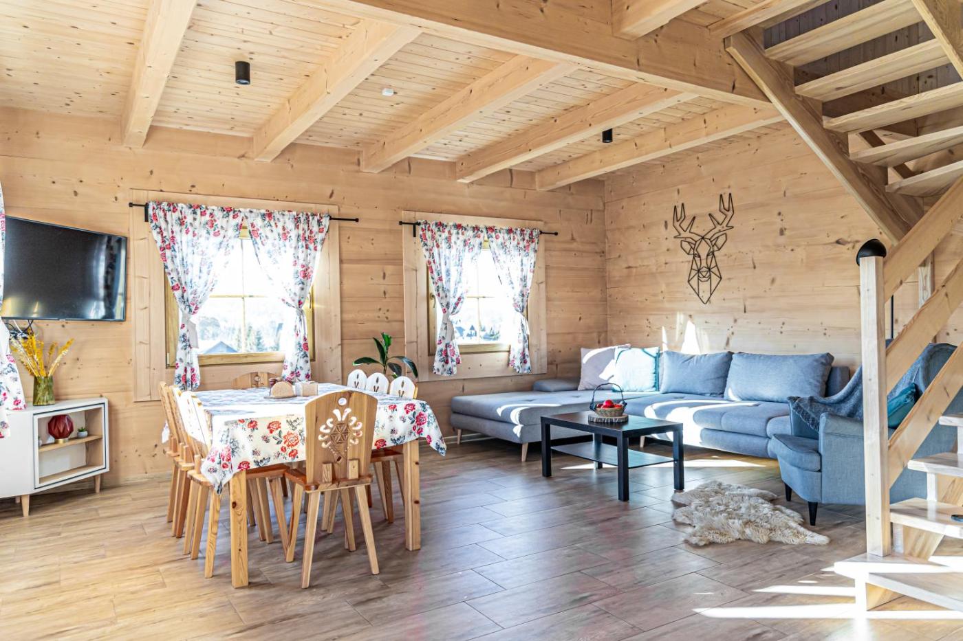 Domek z 3 sypialniami. This spacious chalet consists of 1 living room, 3 separate bedrooms and 2 bathrooms with a walk-in shower and a hairdryer. Guests will find a stovetop, a refrigerator, kitchenware and an oven in the kitchen. The chalet also offers a barbecue. Featuring a terrace with garden views, this chalet also provides a dining area and a flat-screen TV with satellite channels. The unit offers 6 beds. Domek - 10 osobowy. Powierzchnia pokoju ok.: 120 mkw.
