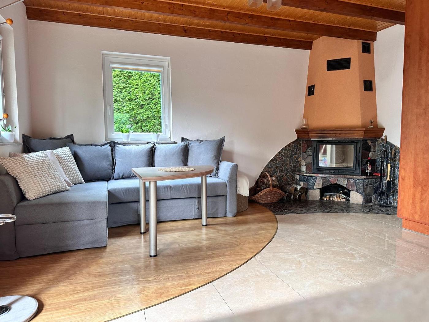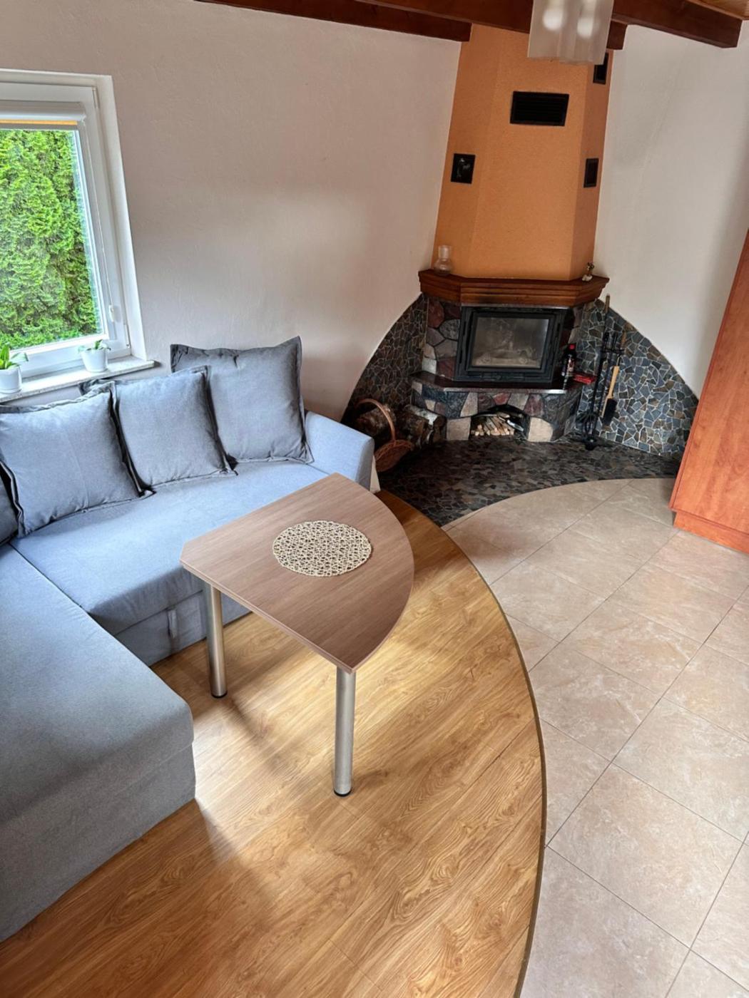 Dom wakacyjny. This holiday homes special feature is the fireplace. Featuring a private entrance, this holiday home consists of 1 living room, 2 separate bedrooms and 1 bathroom with a shower and a hairdryer. Guests will find a stovetop, a refrigerator, kitchenware and a toaster in the well-fitted kitchen. The holiday home also offers a barbecue. Boasting a terrace with garden views, this holiday home also provides a tea and coffee maker and a flat-screen TV with cable channels. The unit offers 5 beds. Dom wakacyjny - 6 osobowy. Powierzchnia pokoju ok.: 70 mkw.
