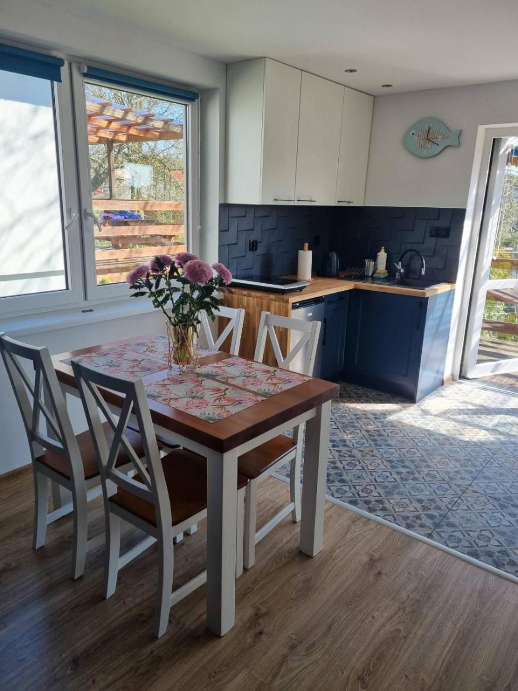 Dom z 2 sypialniami. The holiday home offers a sofa, parquet floors, as well as a shared bathroom featuring a walk-in shower. Guests will find a stovetop, a refrigerator, kitchenware and an electric kettle in the well-fitted kitchenette. The holiday home also comes with a barbecue. Boasting a terrace, this holiday home also features a dining area, a wardrobe and a flat-screen TV. The unit has 4 beds. Dom wakacyjny - 6 osobowy. Powierzchnia pokoju ok.: 50 mkw. ;