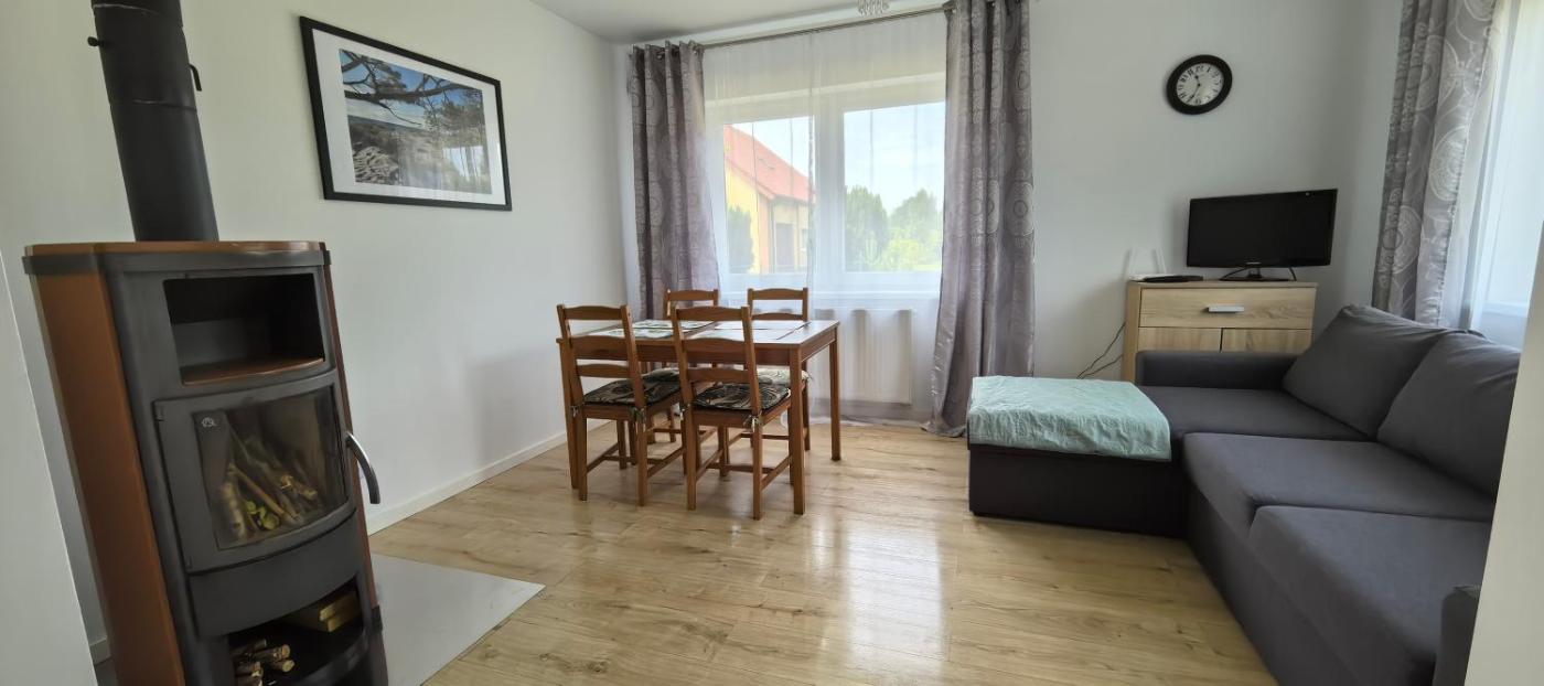 Dom z 2 sypialniami. This holiday homes special feature is the fireplace. Featuring a private entrance, this holiday home consists of 1 living room, 2 separate bedrooms and 2 bathrooms with a shower. Guests will find a stovetop, a refrigerator, a dishwasher and kitchenware in the well-fitted kitchen. The holiday home also offers a barbecue. This wheelchair accessible holiday home features soundproof walls, a seating area with a flat-screen TV and a roll-in shower. The unit offers 4 beds. Dom wakacyjny - 6 osobowy. Powierzchnia pokoju ok.: 90 mkw.
