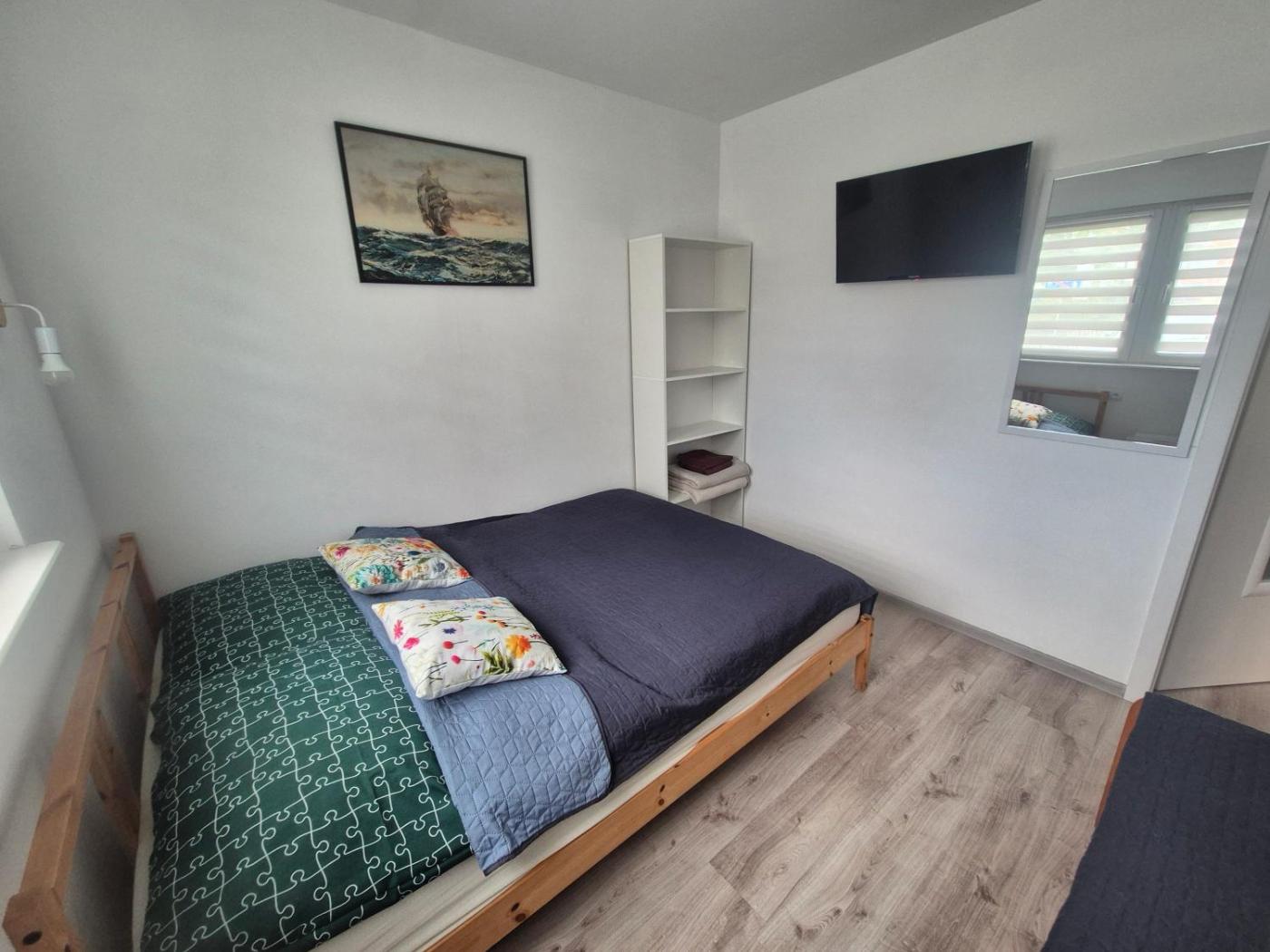 Dom z 1 sypialnią. Boasting a private entrance, this holiday home also comes with 1 living room, 1 separate bedroom and 1 bathroom with a shower. Guests will find a stovetop, a refrigerator, kitchenware and an electric kettle in the well-equipped kitchenette. The holiday home also includes a barbecue. Featuring a terrace with garden views, this holiday home also features a seating area and a flat-screen TV with cable channels. The unit has 3 beds. Dom wakacyjny - 5 osobowy. Powierzchnia pokoju ok.: 35 mkw.
