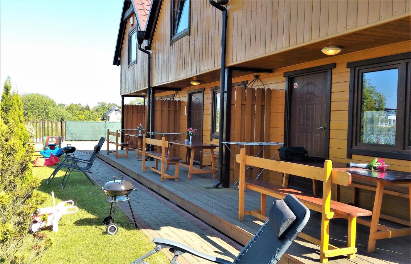 Dom z 2 sypialniami. Featuring a private entrance, this holiday home consists of 1 living room, 2 separate bedrooms and 1 bathroom with a walk-in shower. Guests will find a stovetop, a refrigerator, kitchenware and a microwave in the well-equipped kitchen. The holiday home also offers a barbecue. Boasting a terrace with garden views, this holiday home also provides a seating area and a flat-screen TV. The unit offers 5 beds. Dom wakacyjny - 8 osobowy. Powierzchnia pokoju ok.: 54 mkw.