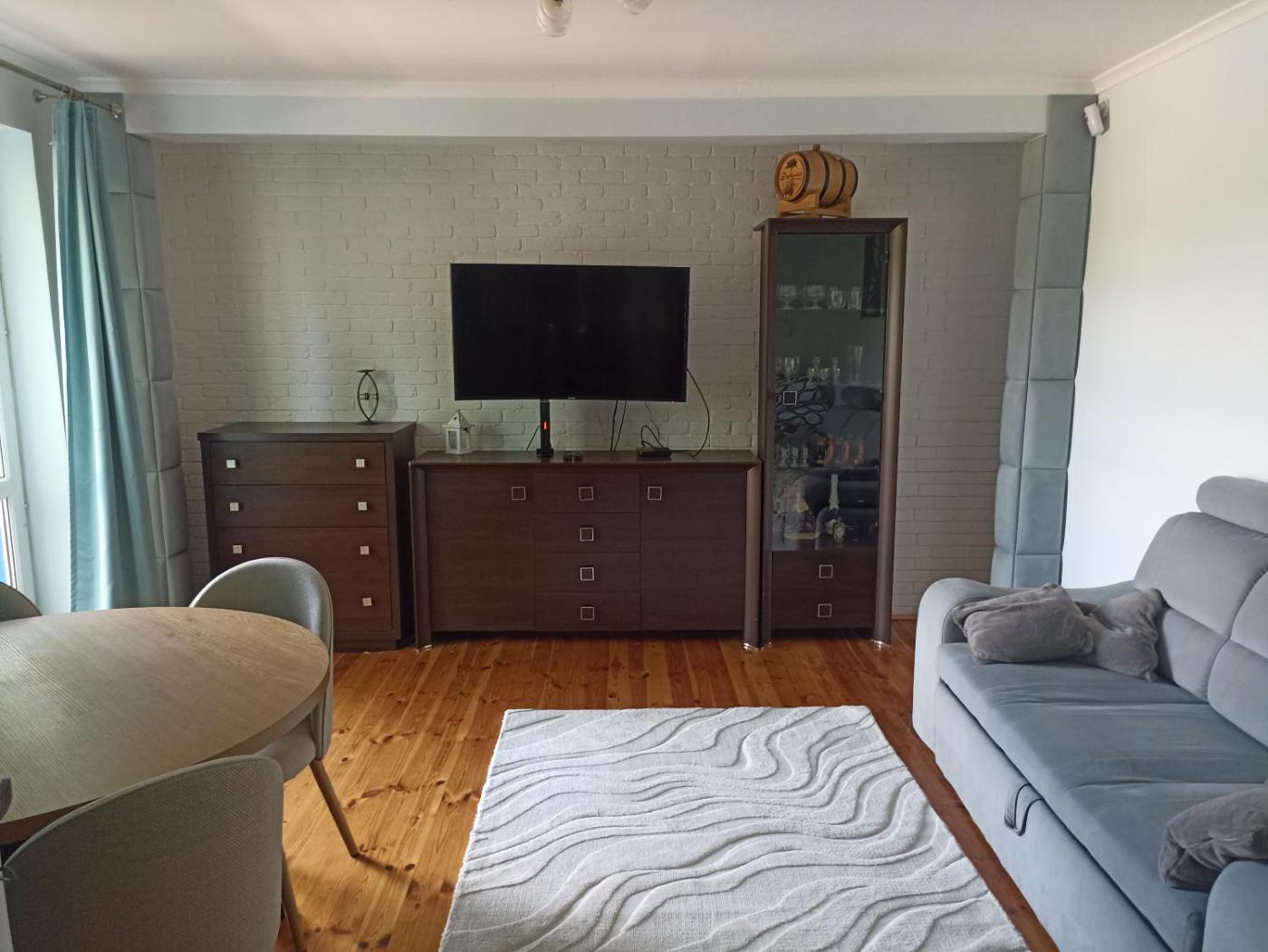 Dom z 1 sypialnią. This holiday home consists of 1 living room, 1 separate bedroom and 1 bathroom with a shower. The holiday homes kitchen, which features a refrigerator, is available for cooking and storing food. Featuring a terrace with river views, this holiday home also provides a tea and coffee maker and a flat-screen TV. The unit offers 2 beds. Dom wakacyjny - 4 osobowy. Powierzchnia pokoju ok.: 47 mkw.